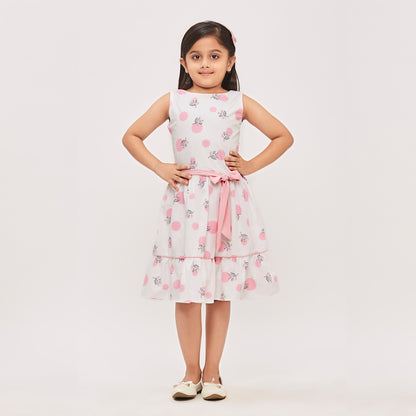 White & Pink Flower Belt Dress – Classic Spring Outfit Elevate your daughter's spring wardrobe with this charming floral dress, featuring delicate white and pink flower prints that capture the essence of the season. The integrated belt cinches at the waist, creating a polished silhouette while adding a touch of sophistication. Crafted for comfort and style, this dress transitions seamlessly from casual playdates to special occasions. The classic design ensures versatility, pairing effortlessly with cardigans, jackets, or worn solo on warmer days. Perfect for creating memorable moments in timeless style.