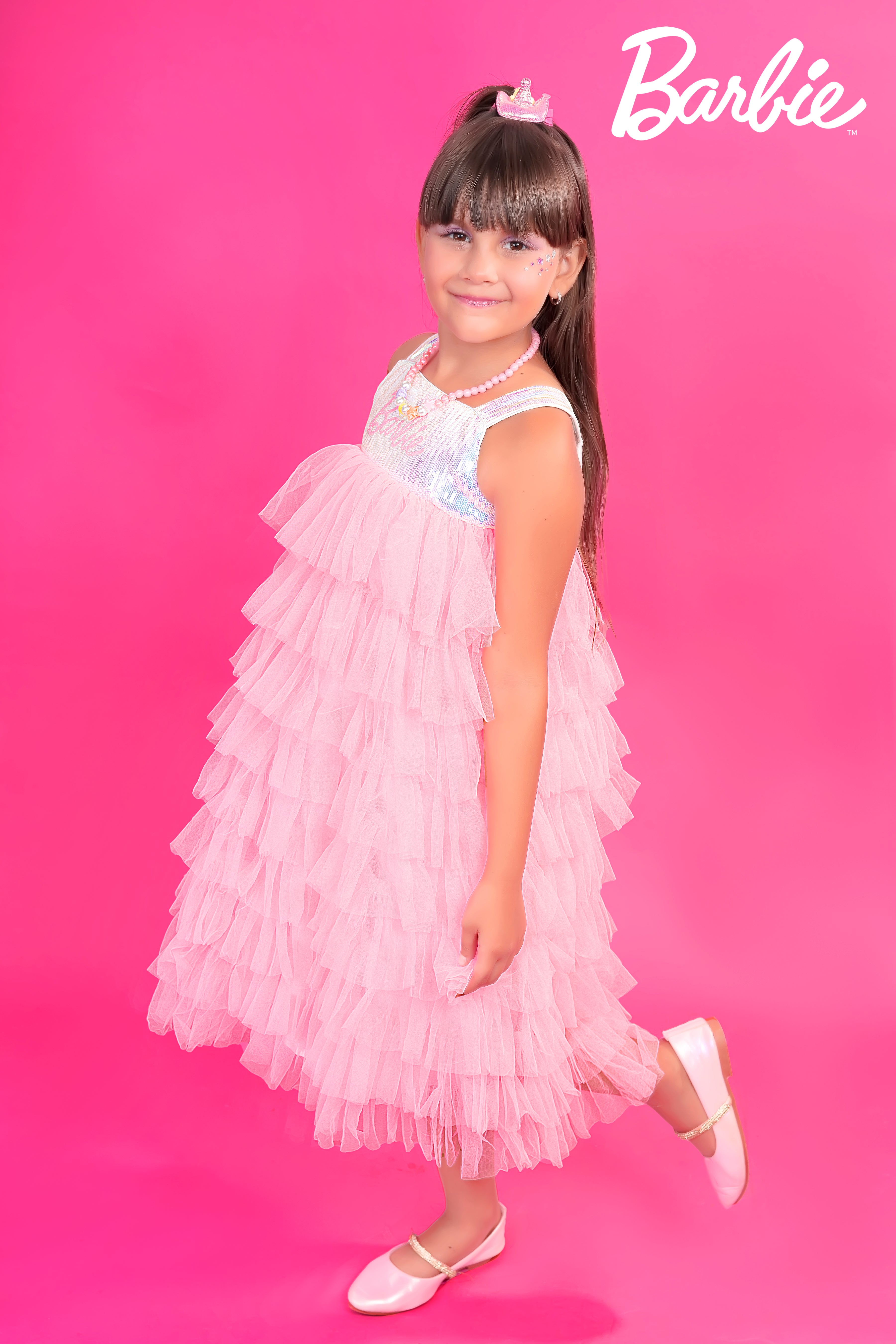 Barbie A-Line Midi Sequin Yoke Frill | Trendy Girls Outfit Online | Kids