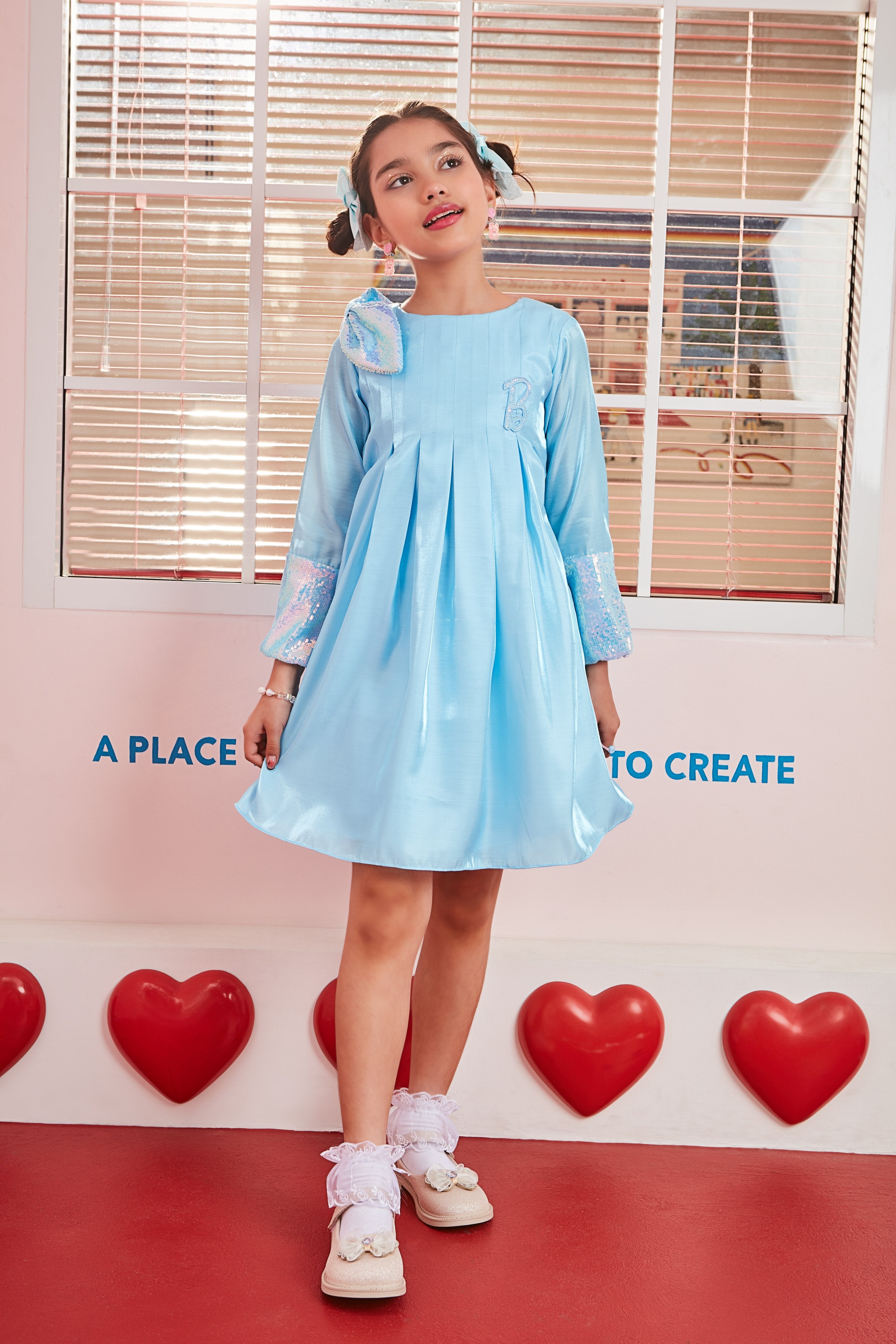 Barbie Aqua Blue Sequin Net Bow Party Dress For Girls | Sparkly Birthday Gown | Kids | Tiny Girl India