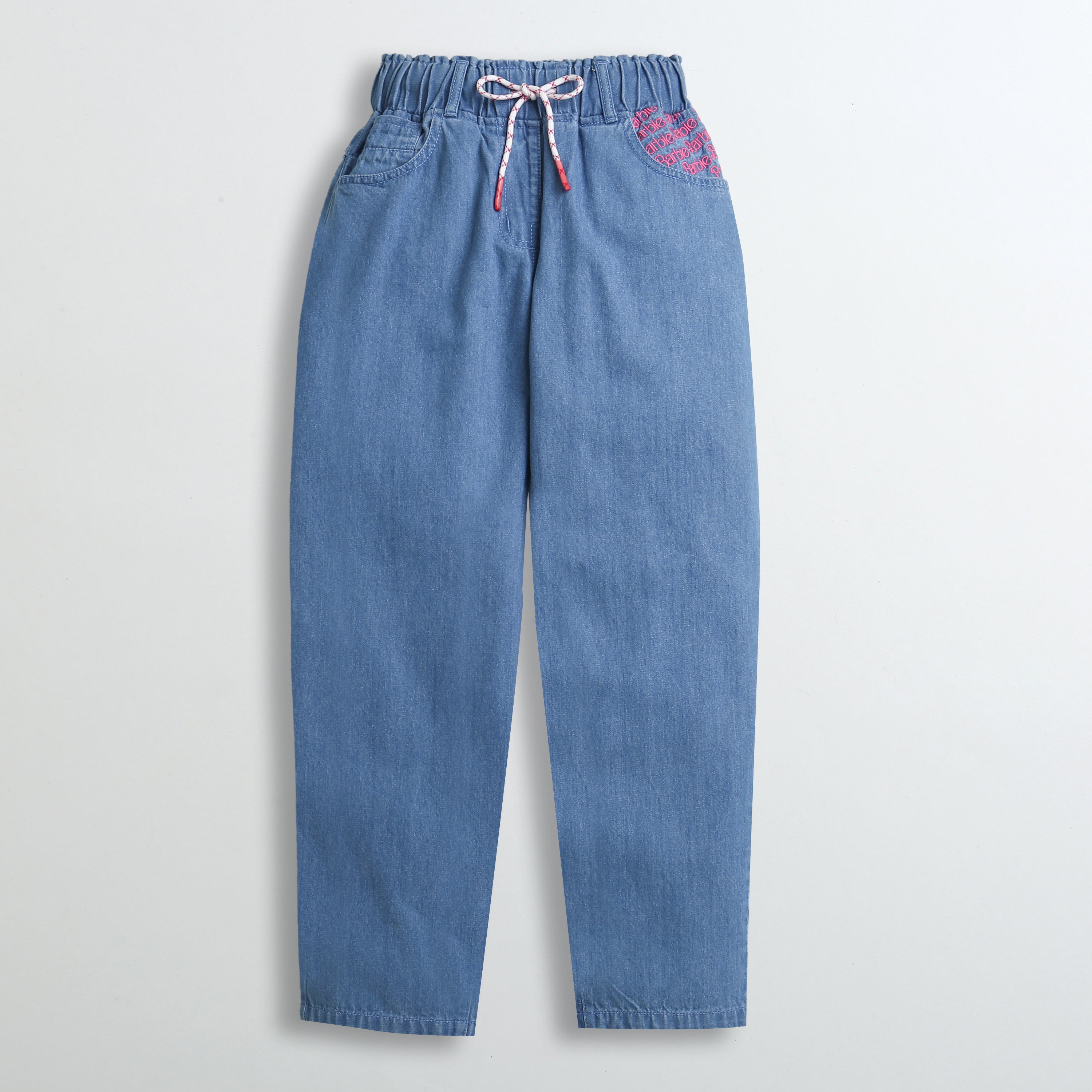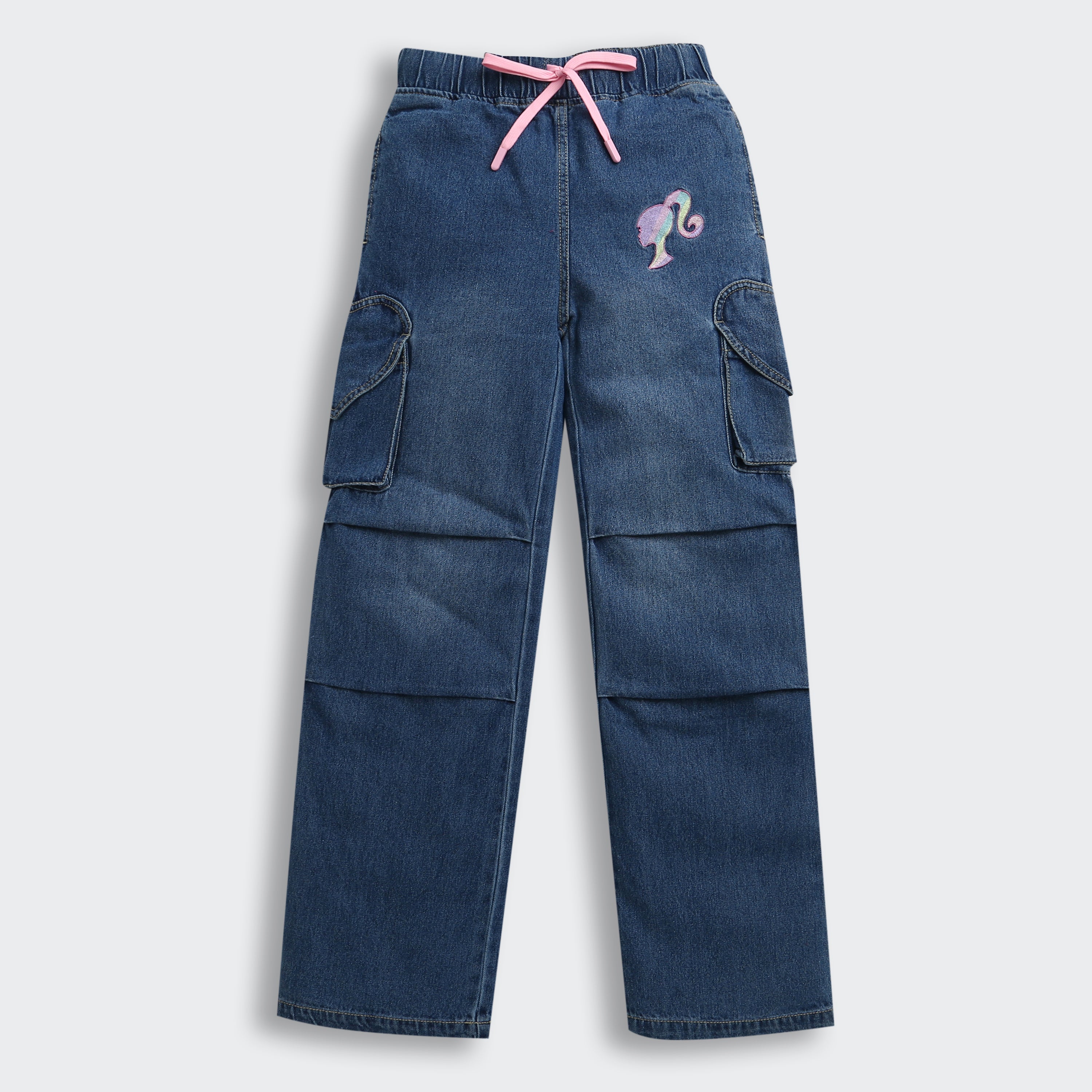 Barbie Blue Denim Logo Shorts For Girls | Trendy Summer Casual Wear | Kids | Tiny Girl India