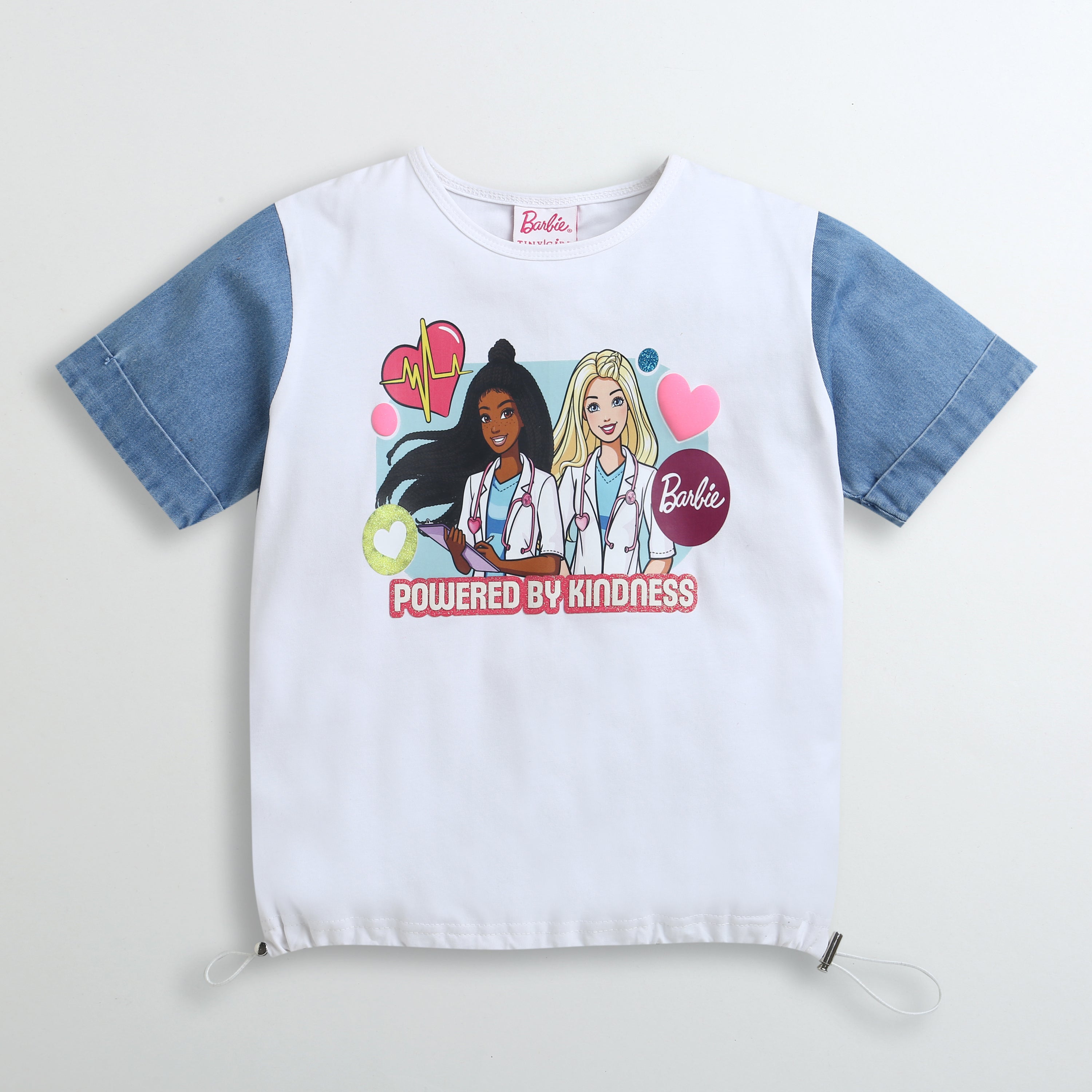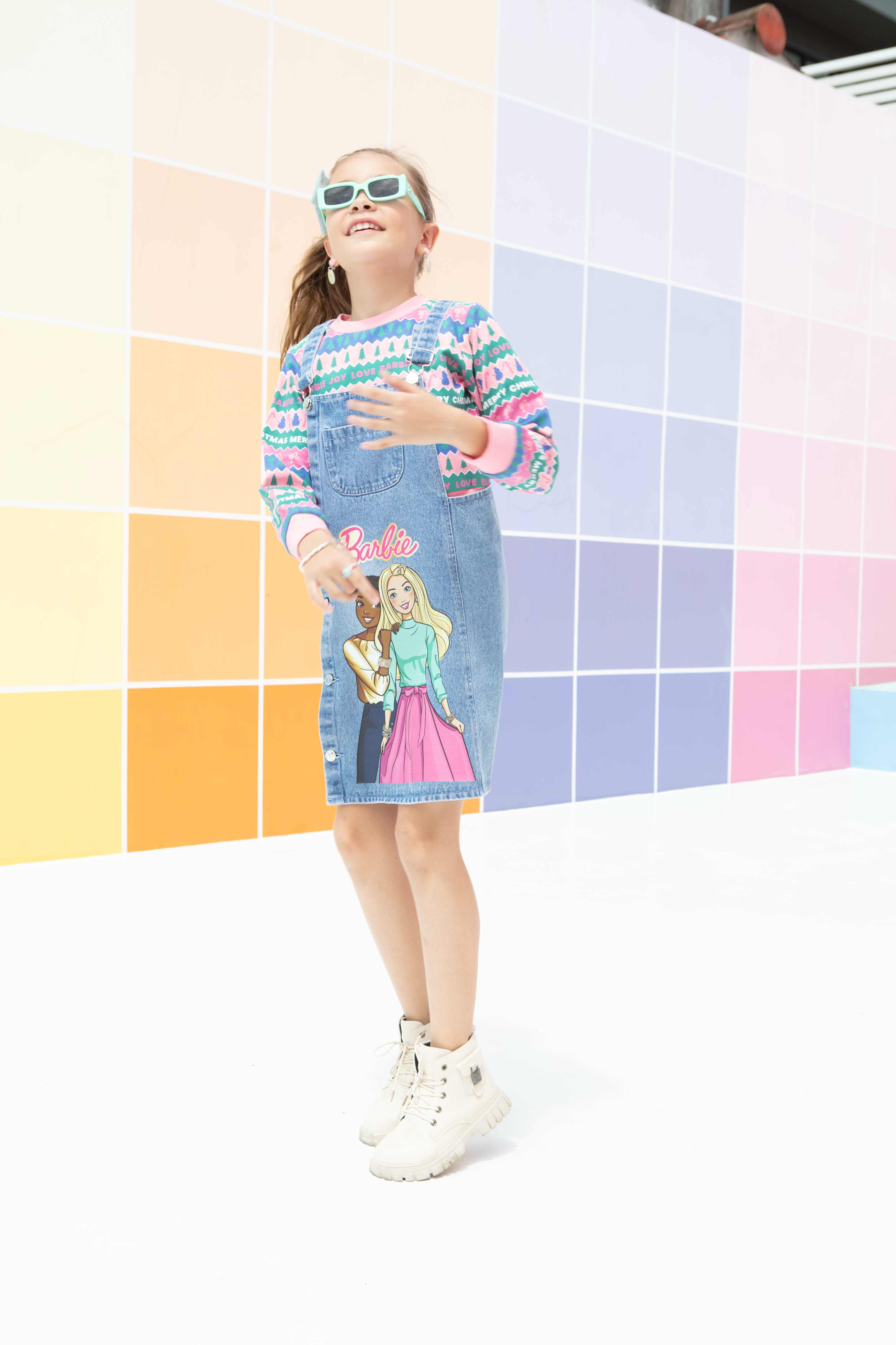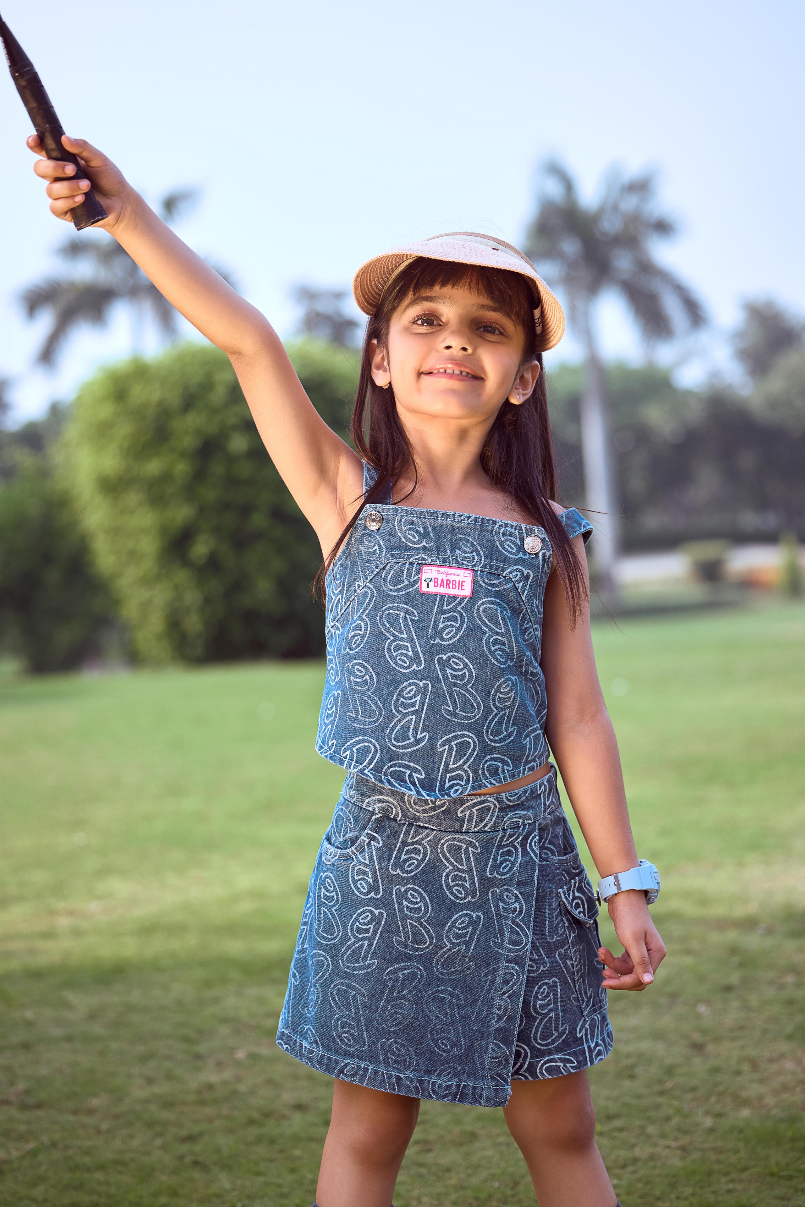 Barbie Blue Denim Printed Shorts Dungaree For Girls | Trendy Kidswear | Kids | Tiny Girl India