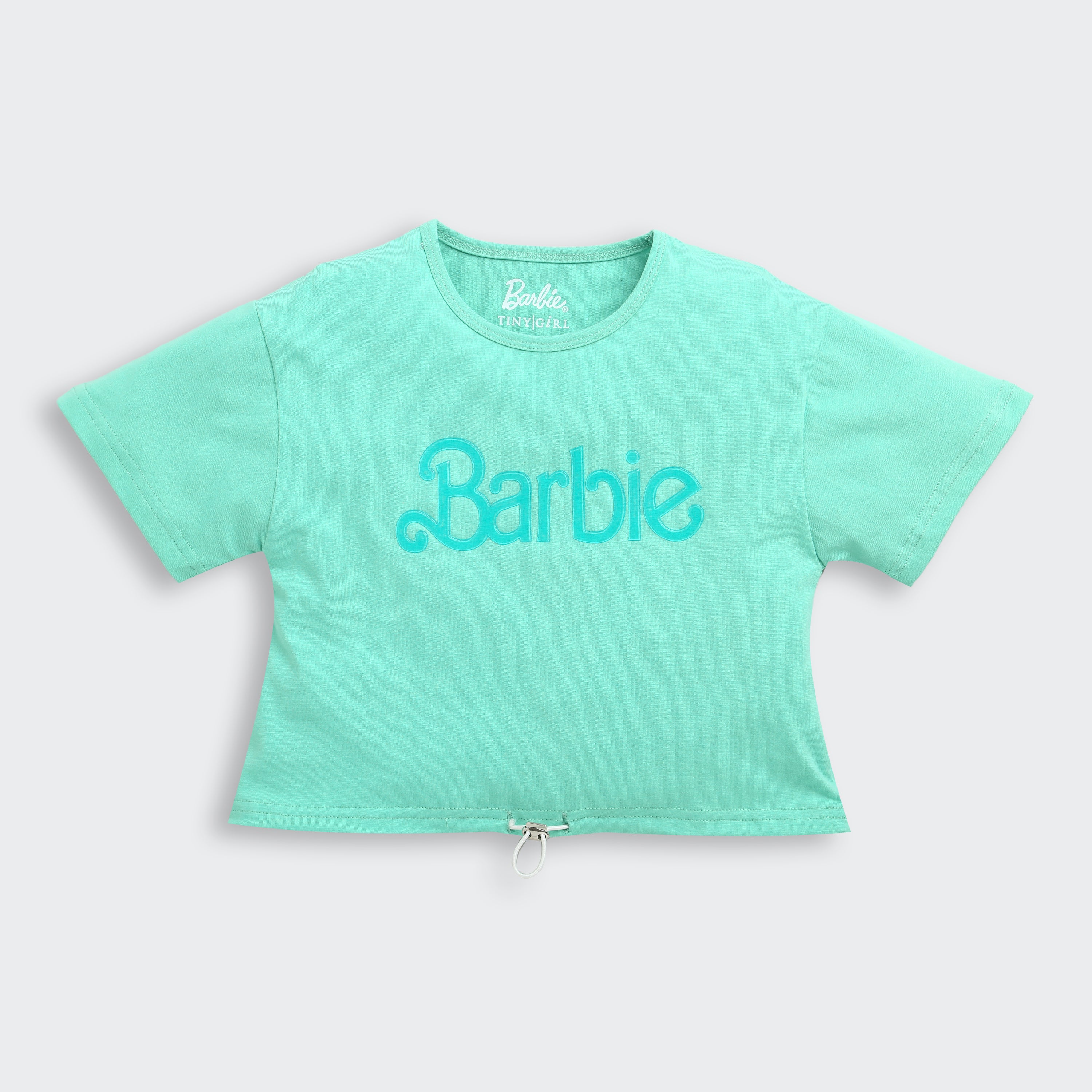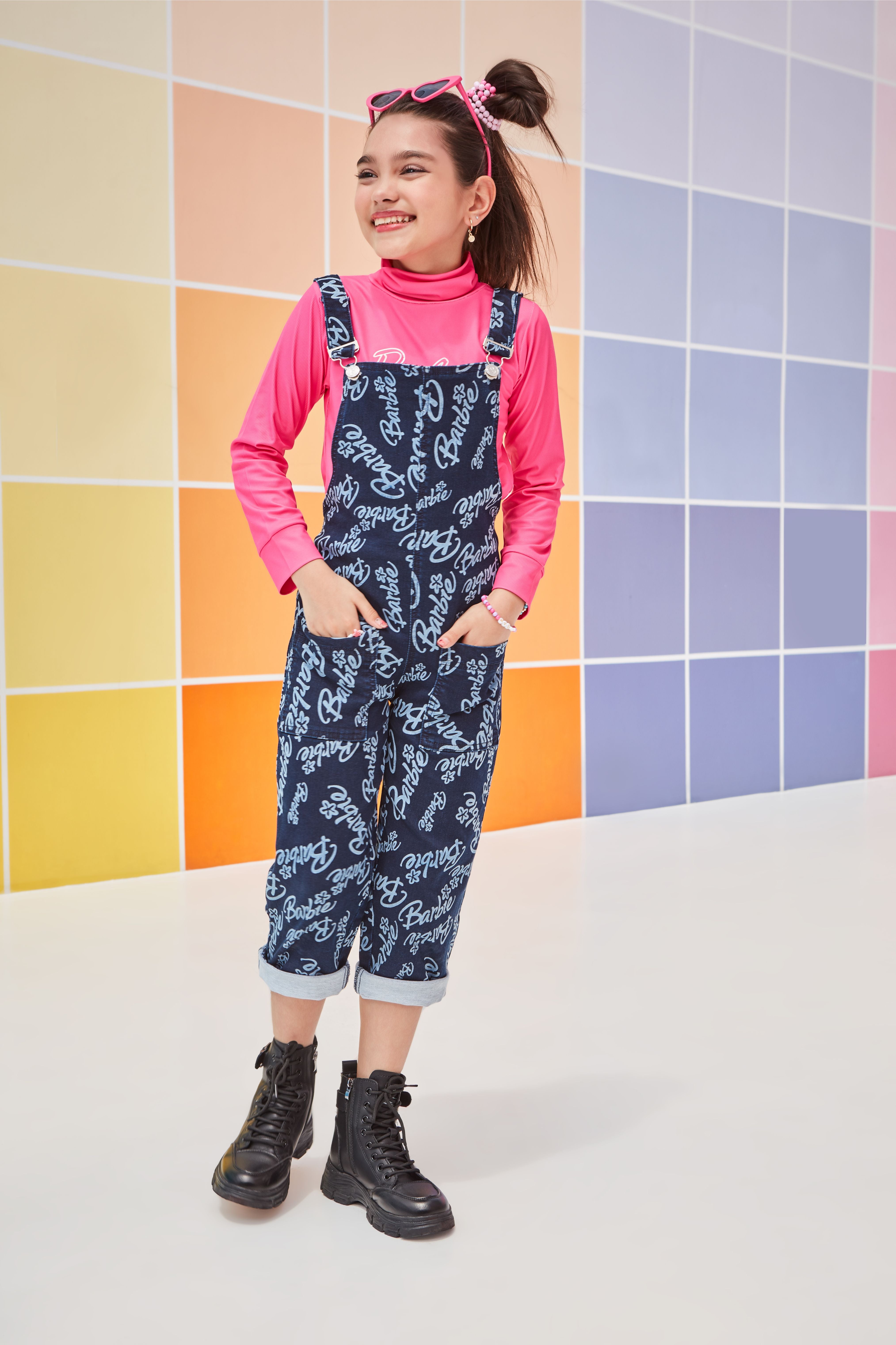 Barbie by Tiny Girl Mattel Featuring Barbie Printed Dungaree With Full Sleeves Top - Light Blue