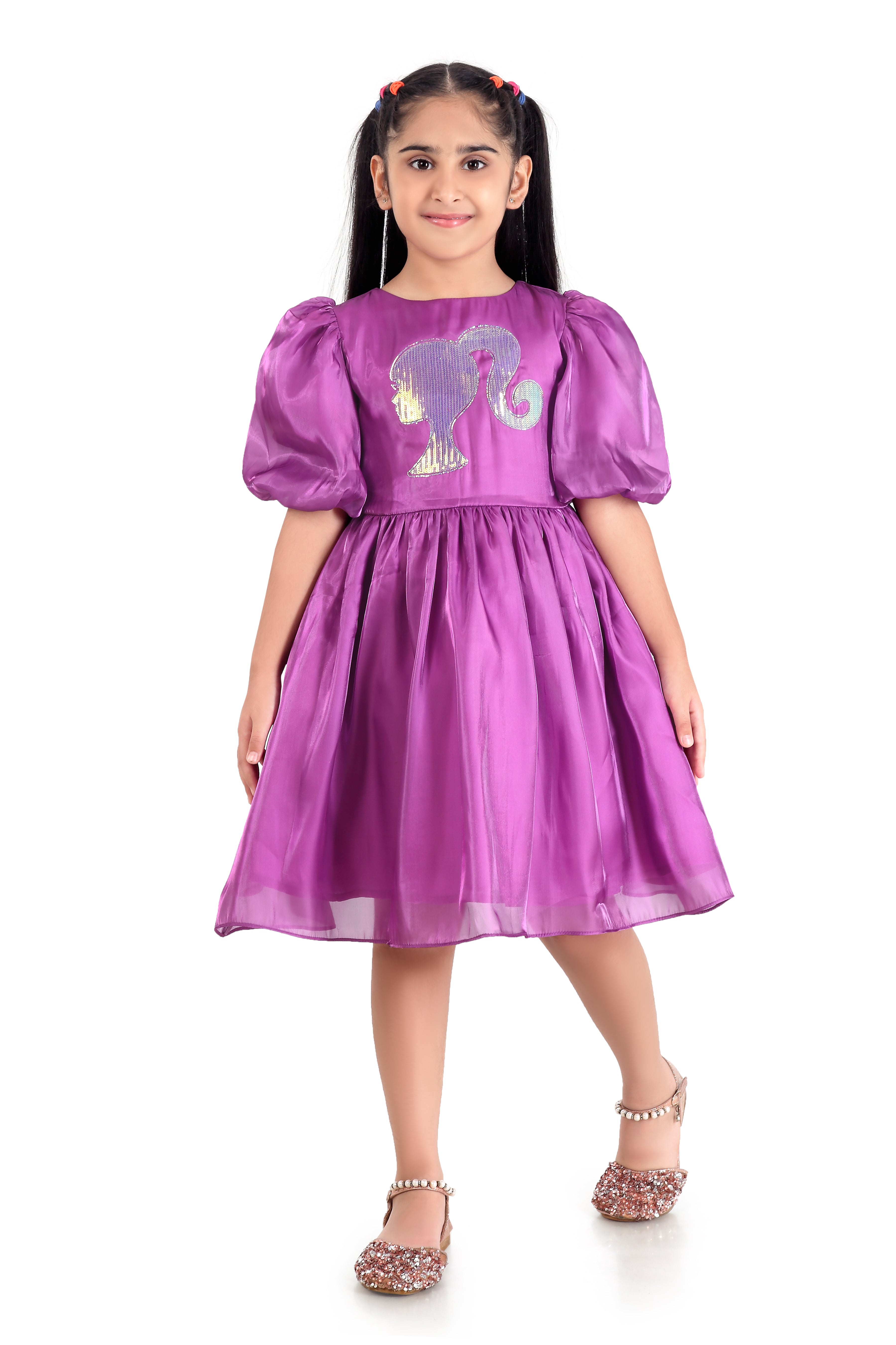 Barbie Purple Satin Puff Sleeve Party Dress For Girls | Festive Kidswear Gown | Kids | Tiny Girl India