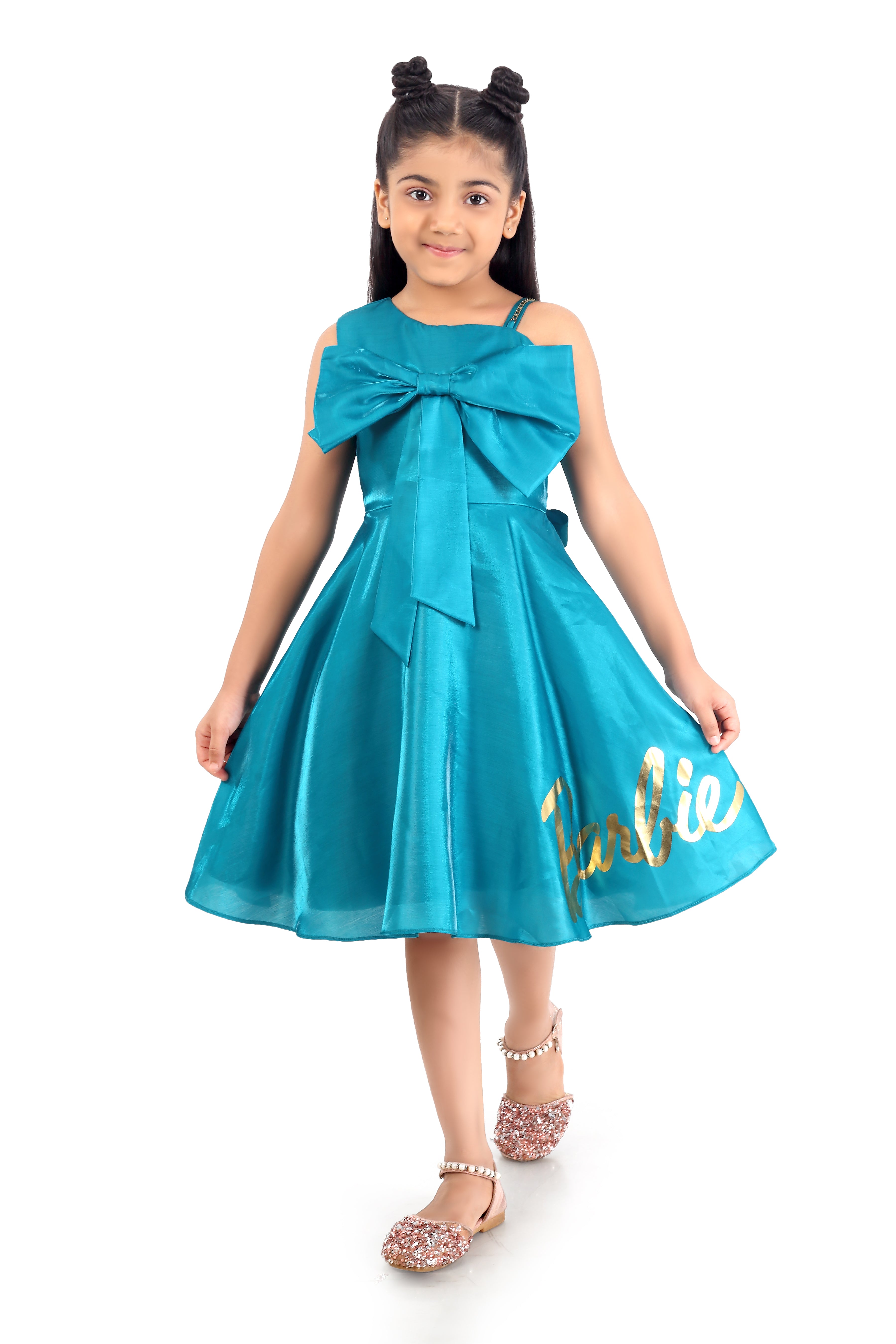 Barbie Turquoise Satin Bow Detail Party Dress For Girls | Elegant Kidswear Gown | Kids | Tiny Girl India