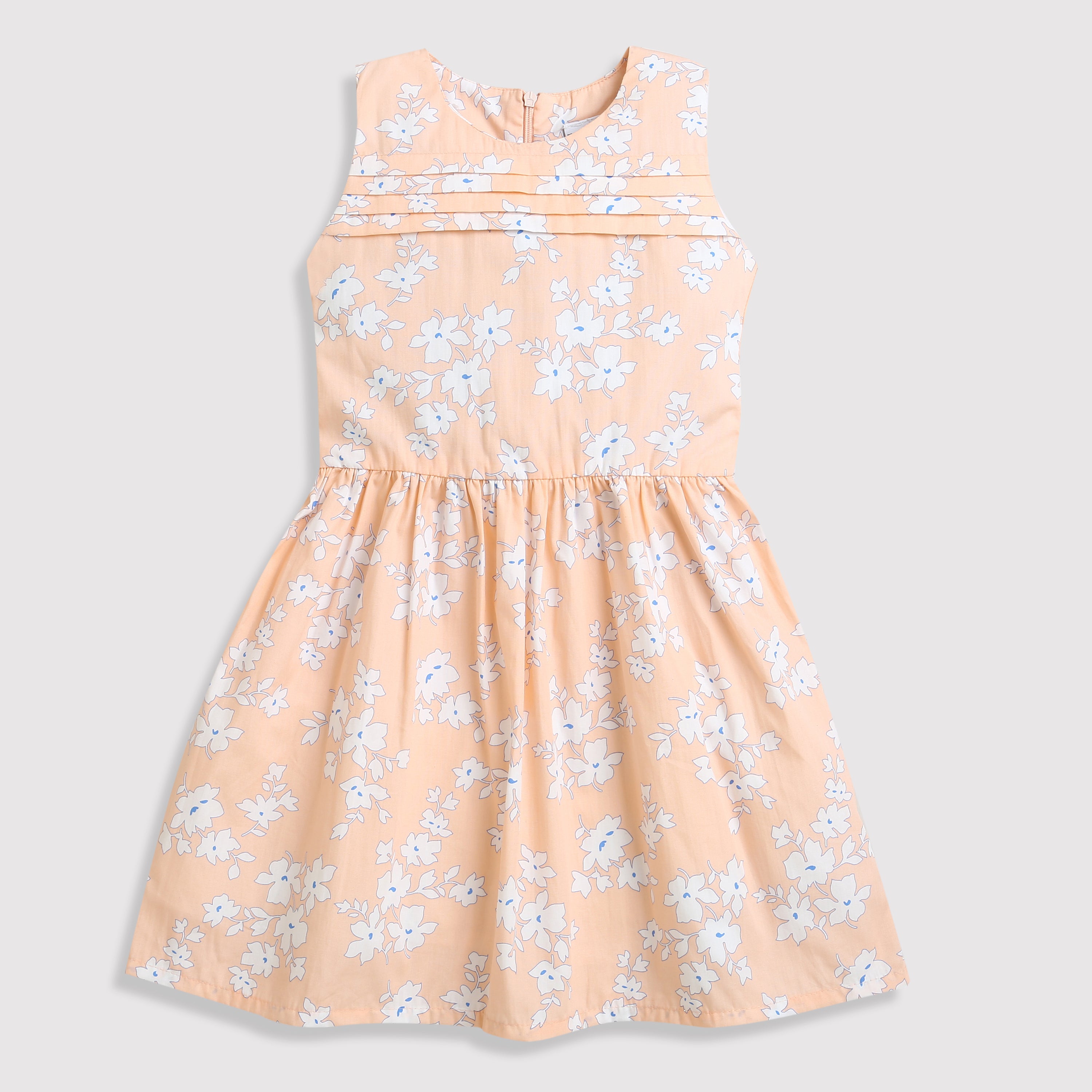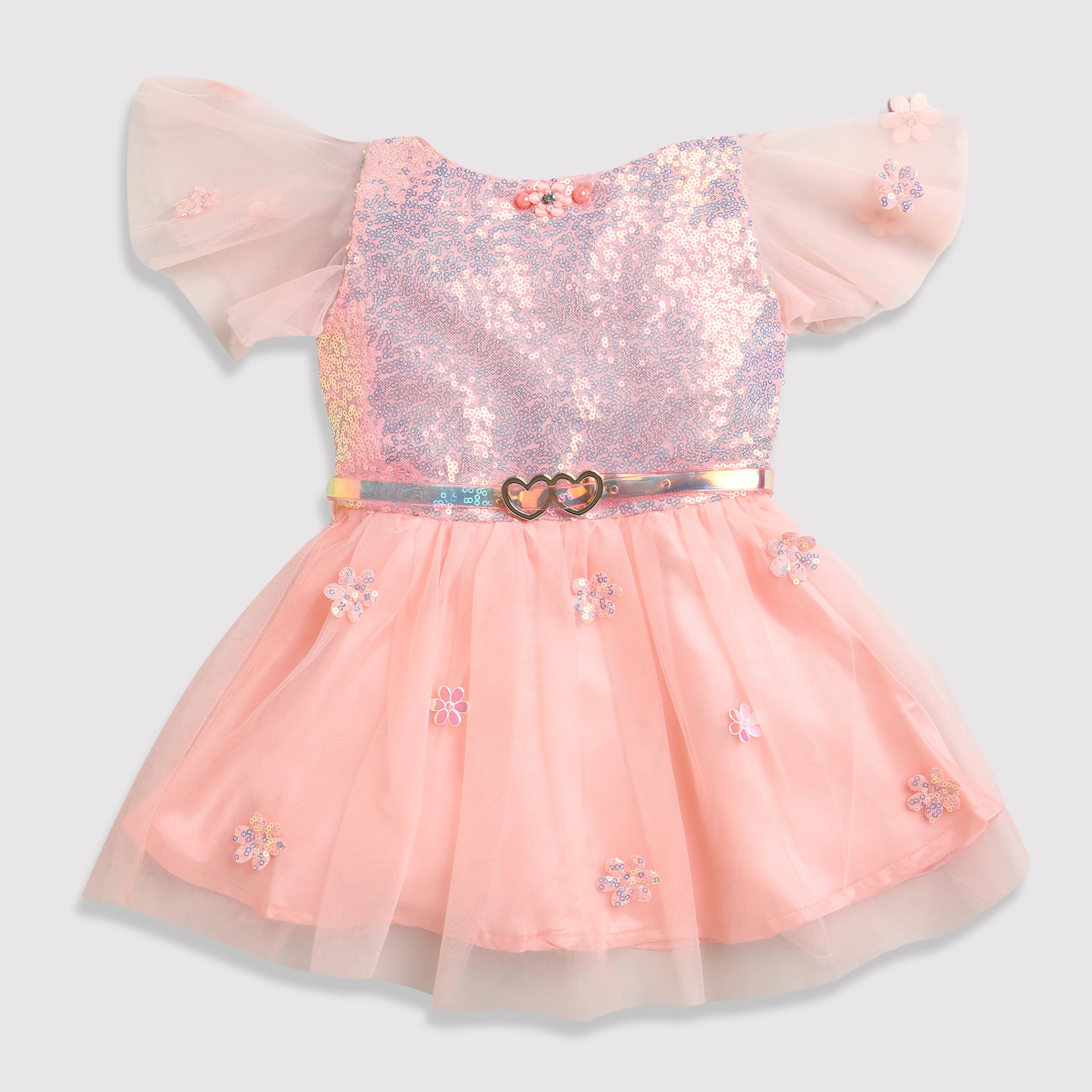 Barbie Peach Net Layered Embellished Party Dress For Girls | Pearl Neckline Frock | Kids | Tiny Girl India