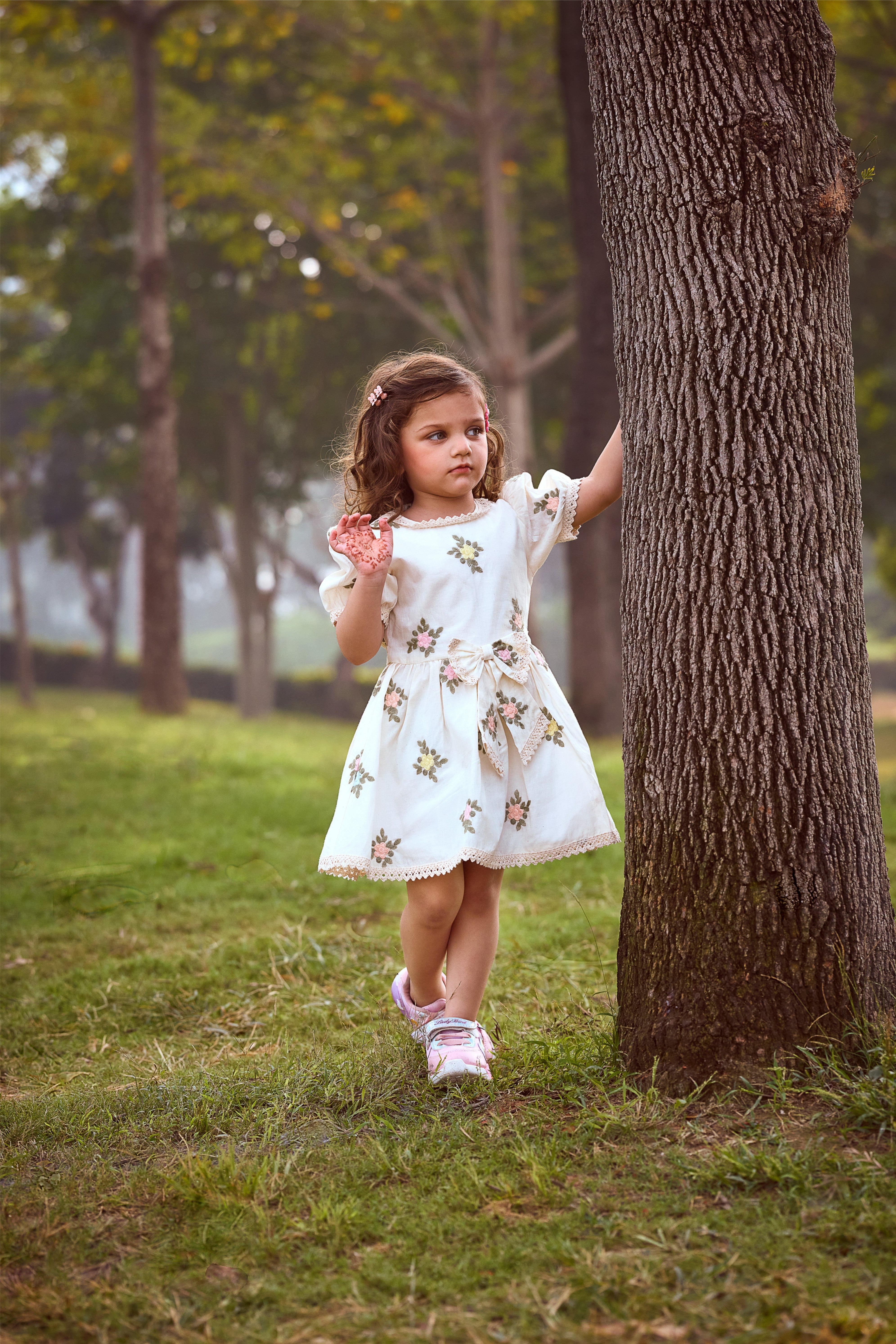 White Floral Ruffle Sleeve Dress – Vibrant Party Pick