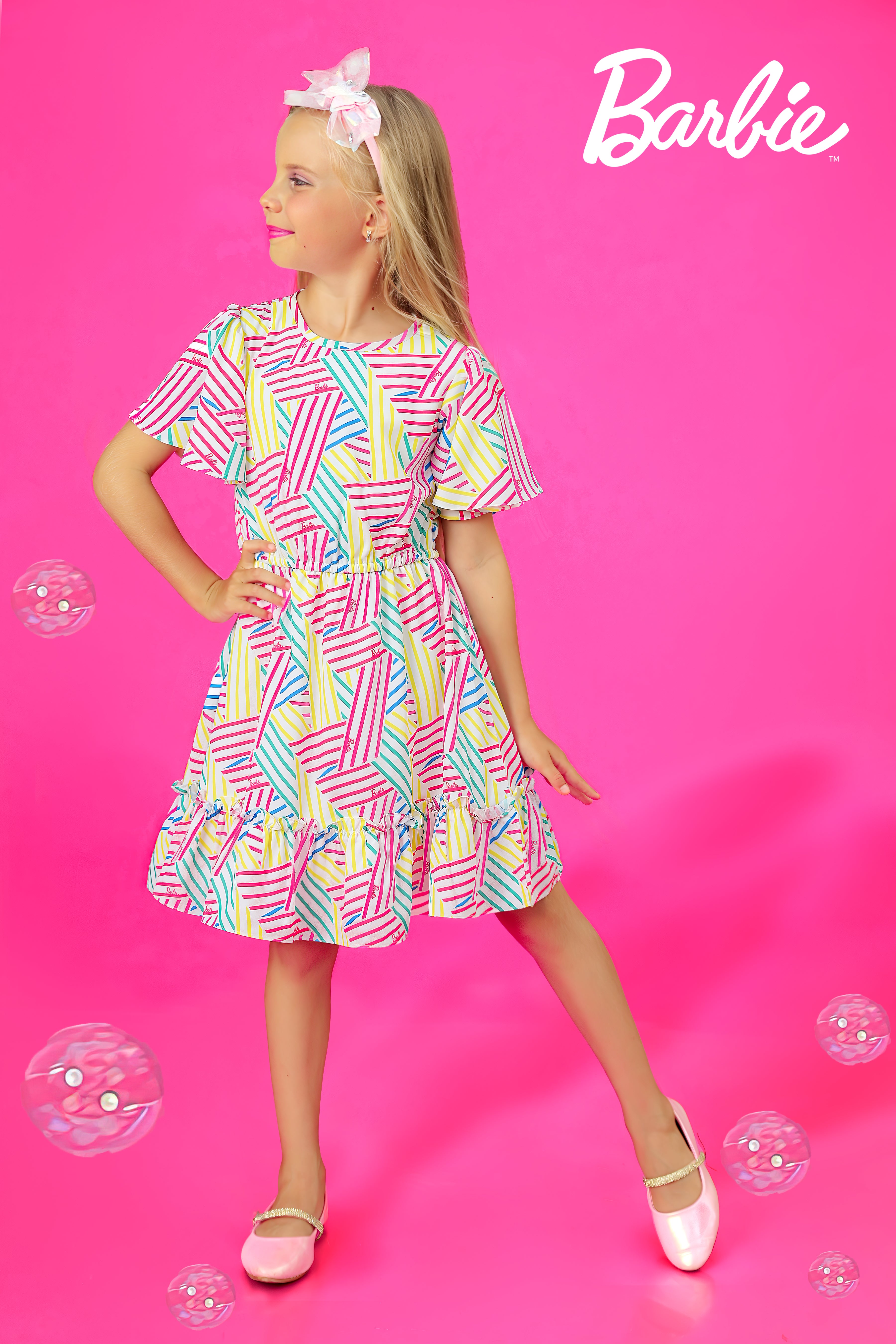 Barbie Peach Striped Collared Button-Down Dress | Girls Stylish Party Dress India | Toddler