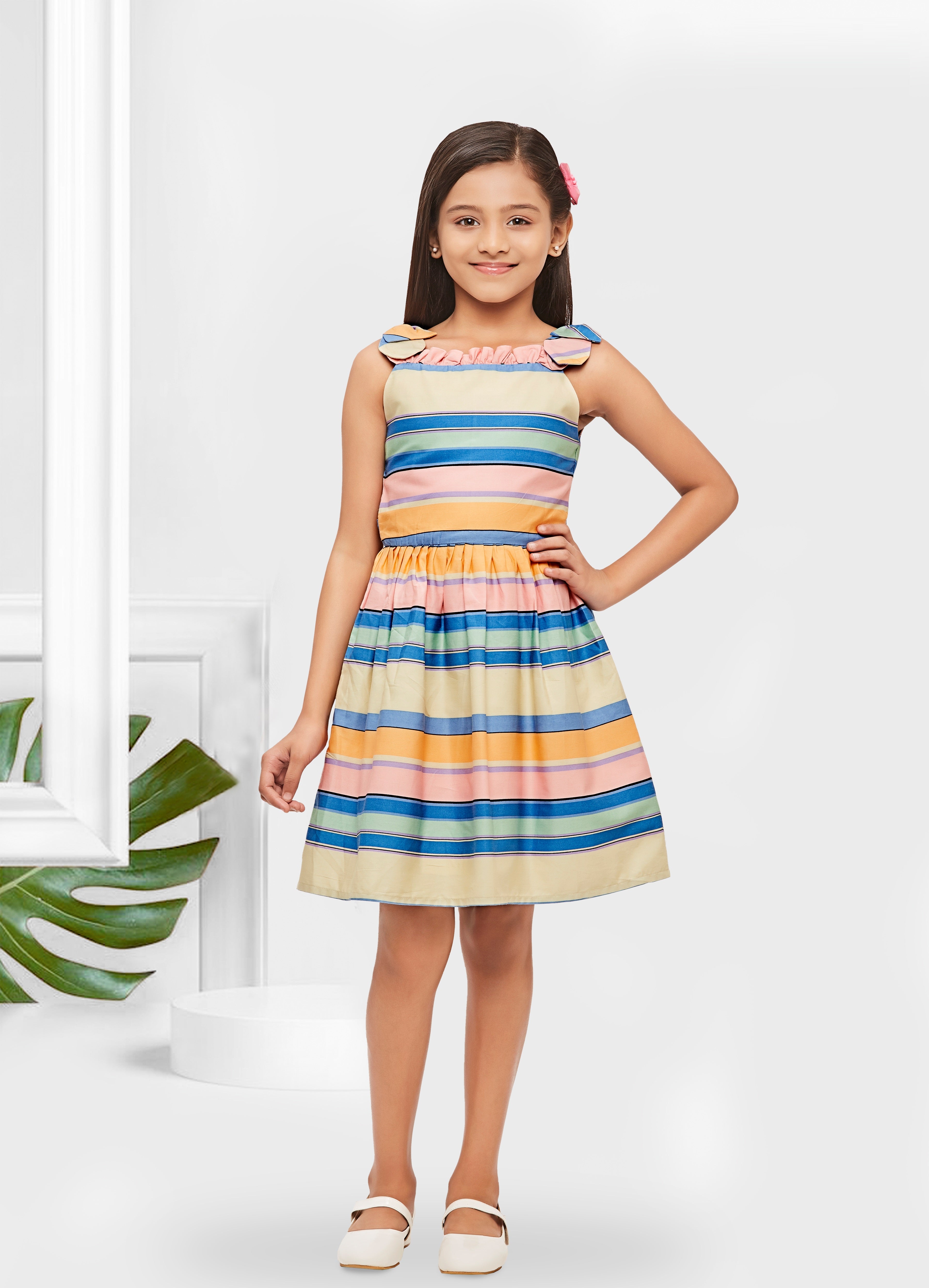 Tressel Kids Ruffled Hemline & Stylish Stripe Midi
