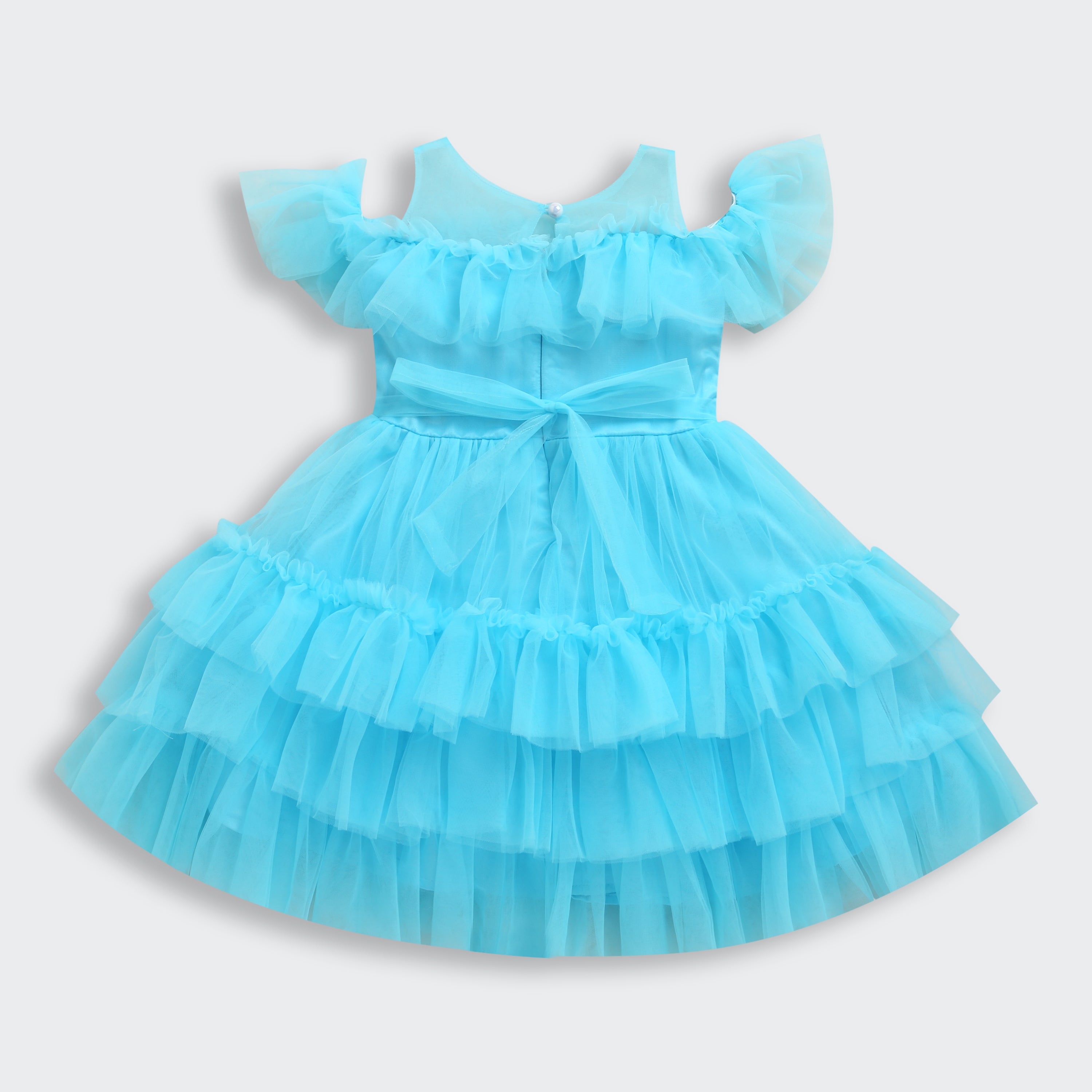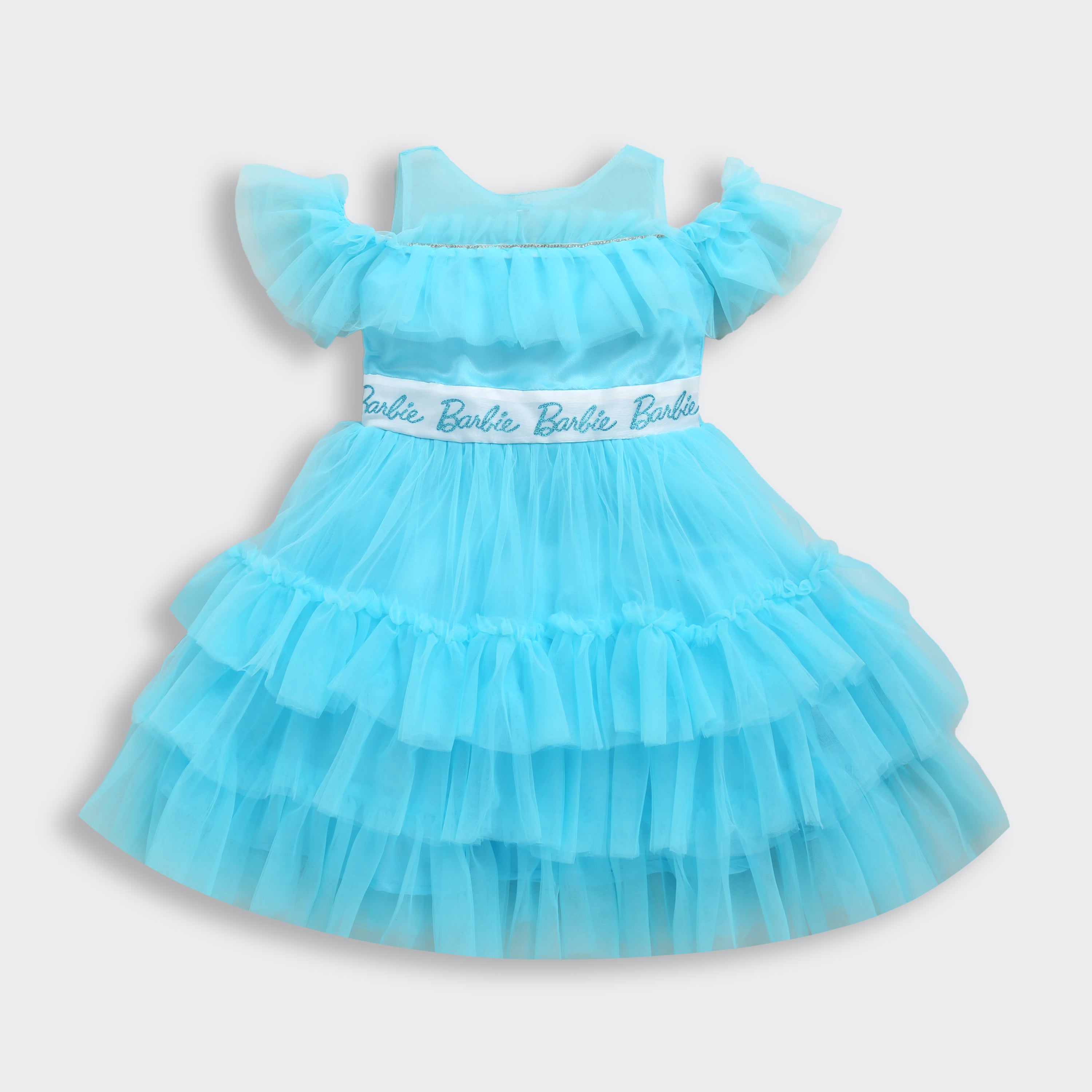 Barbie Sky Blue Tulle Layered Party Dress For Girls | Princess Birthday Outfit | Kids | Tiny Girl India