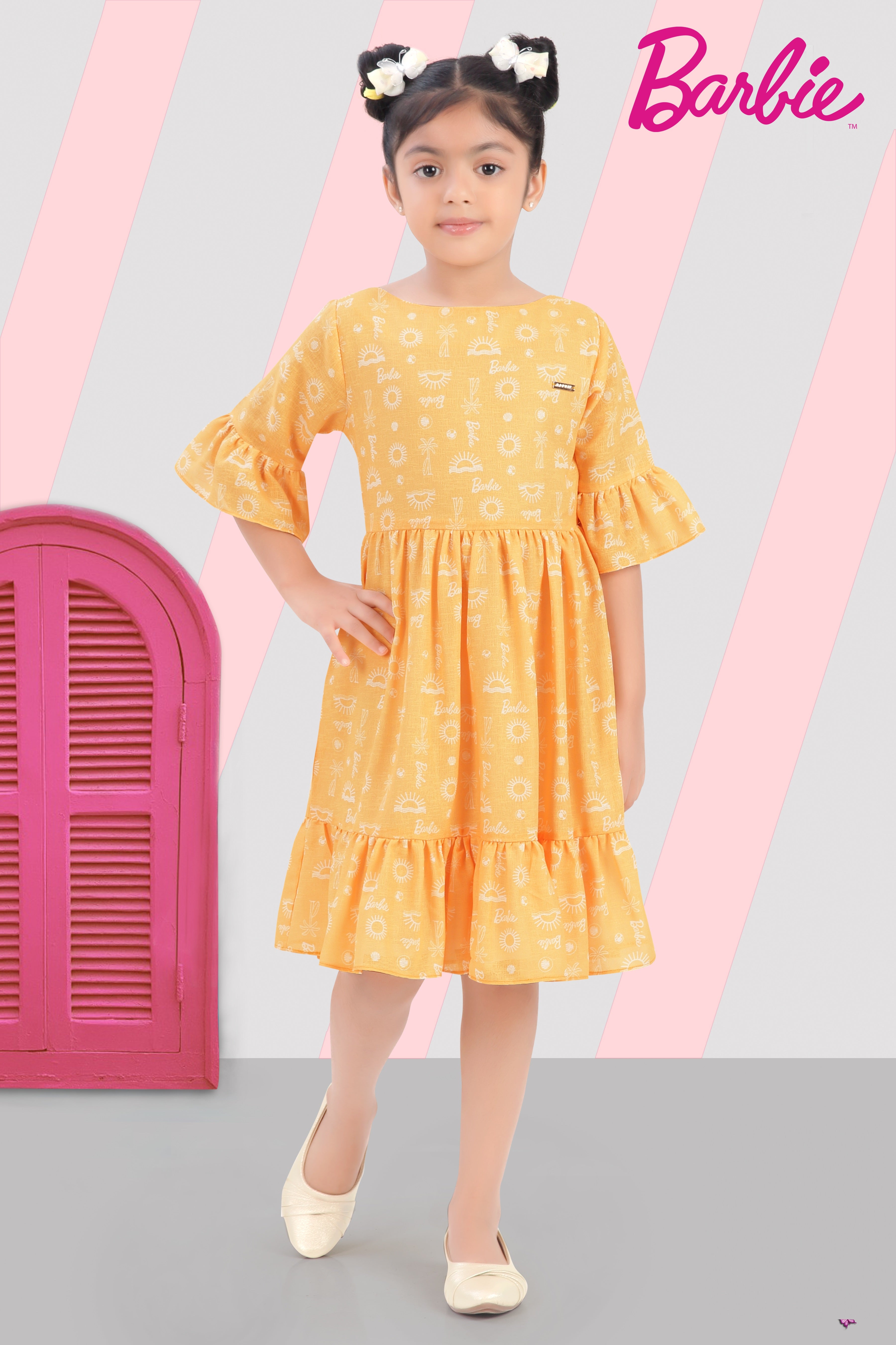 Barbie Printed Boat Neck Midi 3/4Th | Trendy Girls Outfit Online | Kids