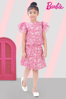 Add a playful flair to her wardrobe with this Pink Flutter-Sleeve Dress. The soft cotton fabric and Barbie logo print give it a trendy yet comfy vibe. Perfect for casual outings, birthdays, or day parties — this easy-wear dress keeps her looking cute and confident all day.