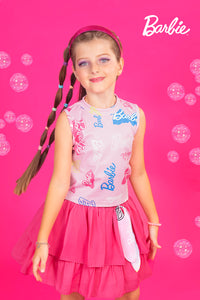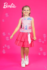Let her twirl into the spotlight with this Pink Layered Barbie Party Frock, made for stylish little stars who love to shine. Crafted from soft net fabric with a multi-tiered frill design, it offers a perfect mix of comfort and sparkle. The sleeveless silhouette and gentle lining keep her at ease through every giggle and dance. Designed by Barbie × Tiny Girl, this dress is ideal for birthdays, festive events, and weekend outings. Pair it with white shoes or sparkly ballerinas for that picture-perfect party look moms adore!