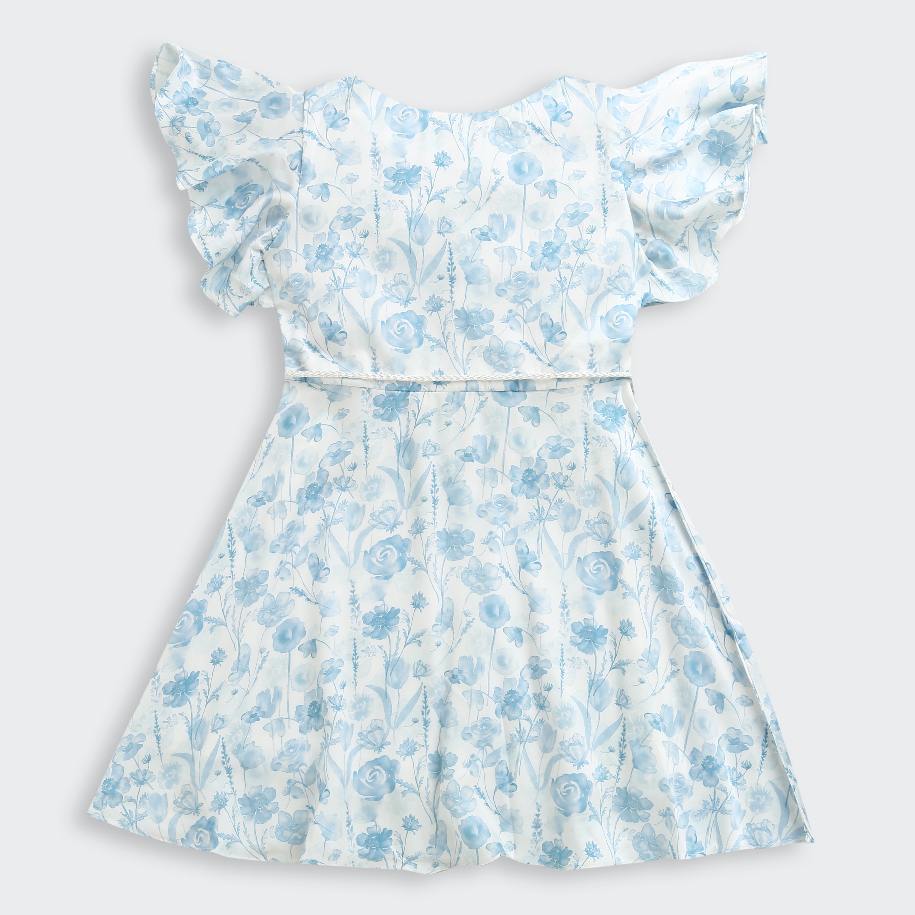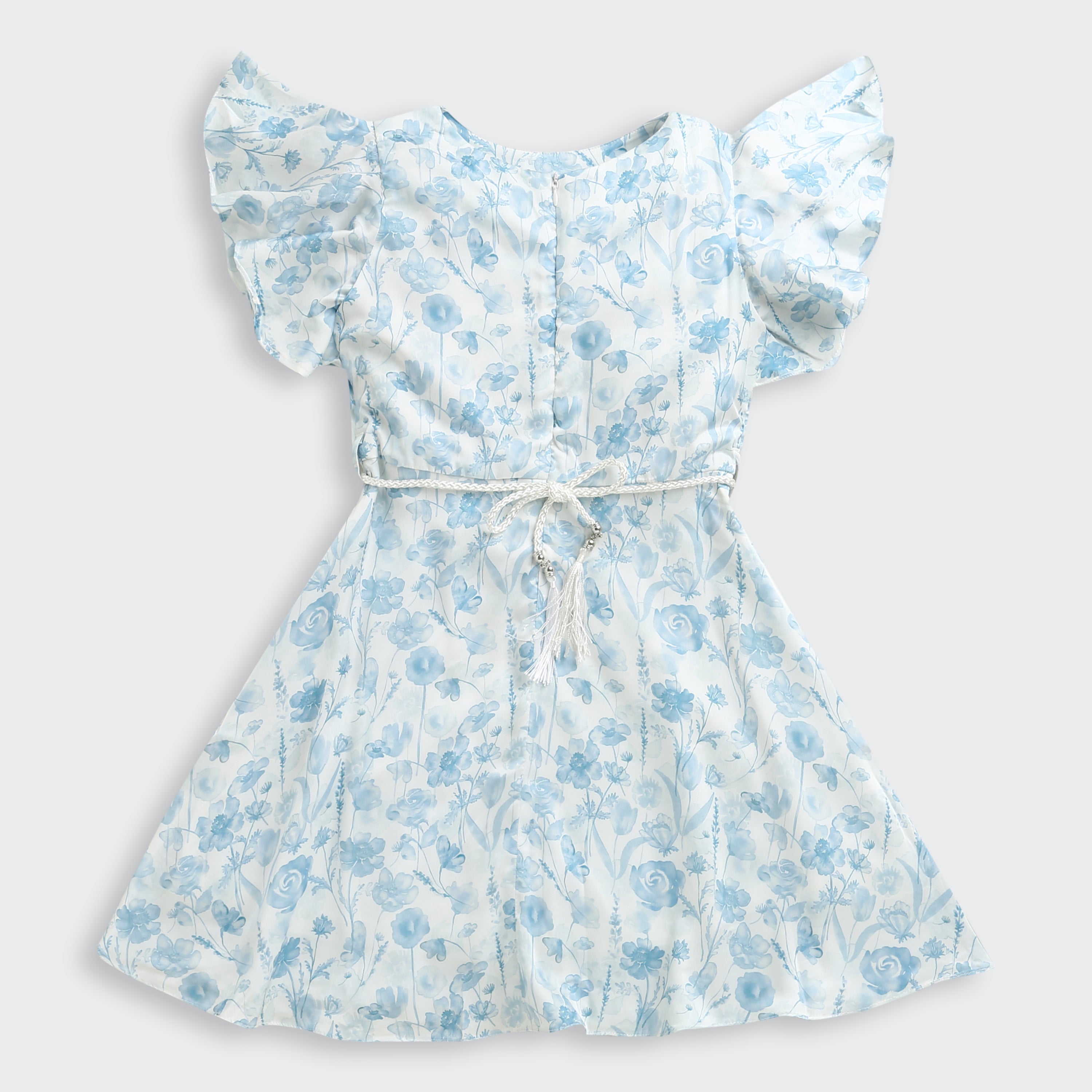 Sky Blue Floral Ruffle Dress for Girls