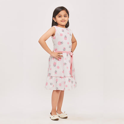 White & Pink Flower Belt Dress – Classic Spring Outfit Elevate your daughter's spring wardrobe with this charming floral dress, featuring delicate white and pink flower prints that capture the essence of the season. The integrated belt cinches at the waist, creating a polished silhouette while adding a touch of sophistication. Crafted for comfort and style, this dress transitions seamlessly from casual playdates to special occasions. The classic design ensures versatility, pairing effortlessly with cardigans, jackets, or worn solo on warmer days. Perfect for creating memorable moments in timeless style.