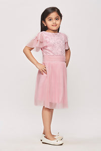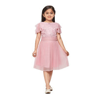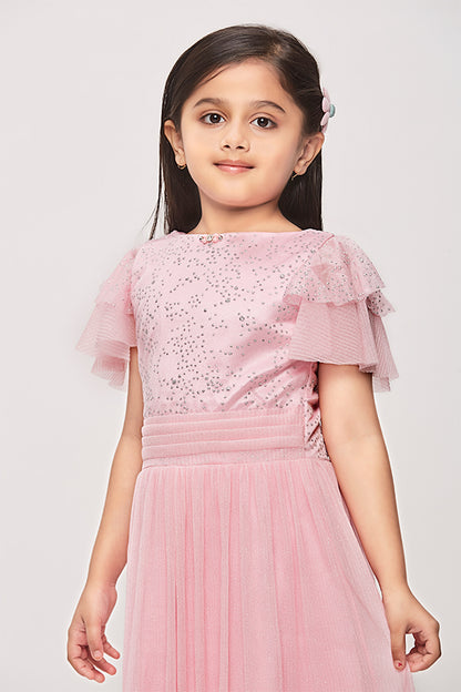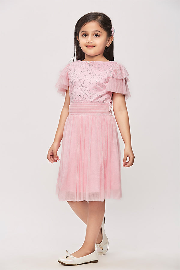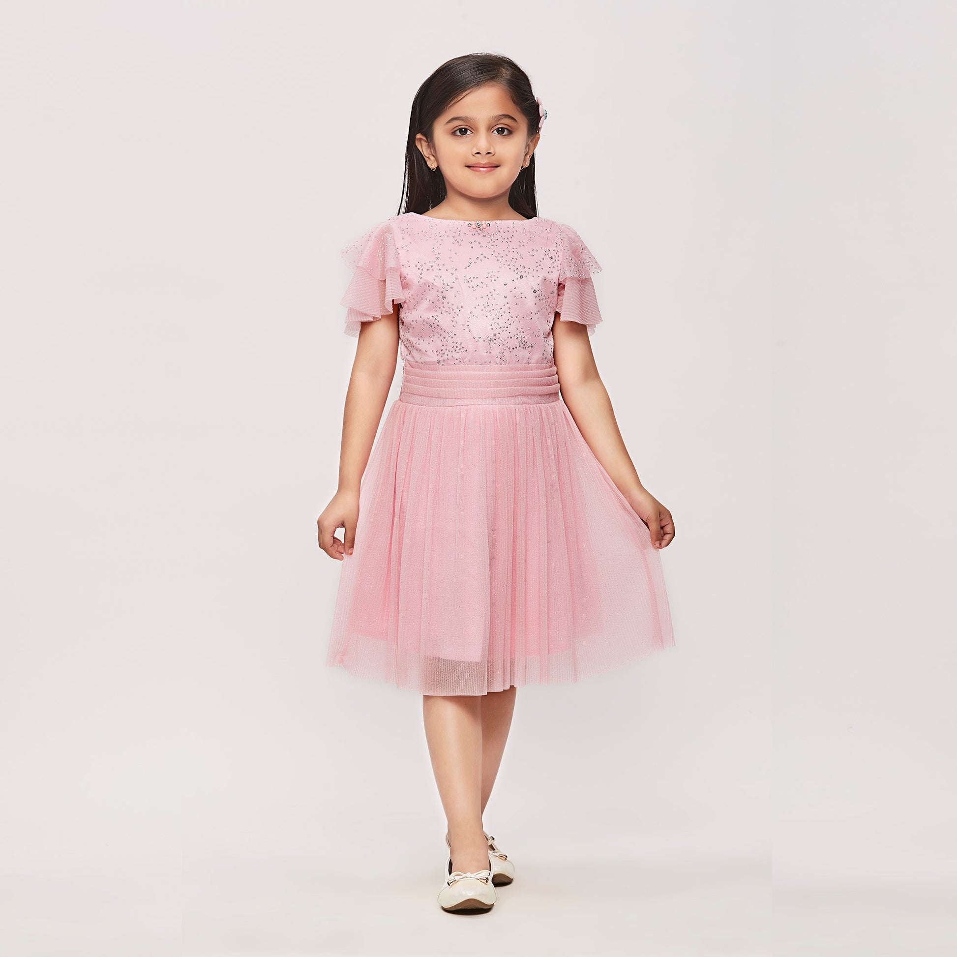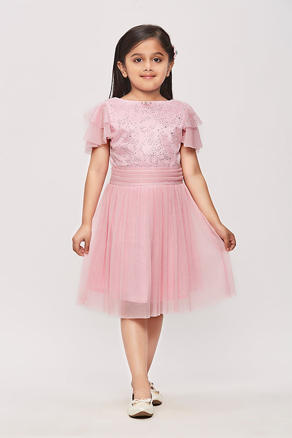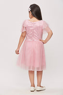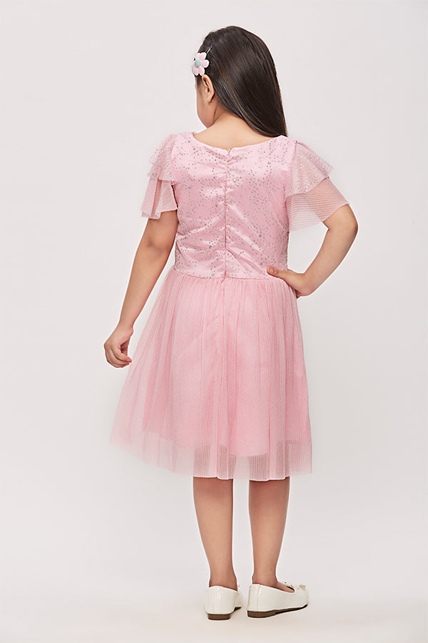 Tiny Girl Half Sleeves Glitter Star Print Midi Dress - Pink