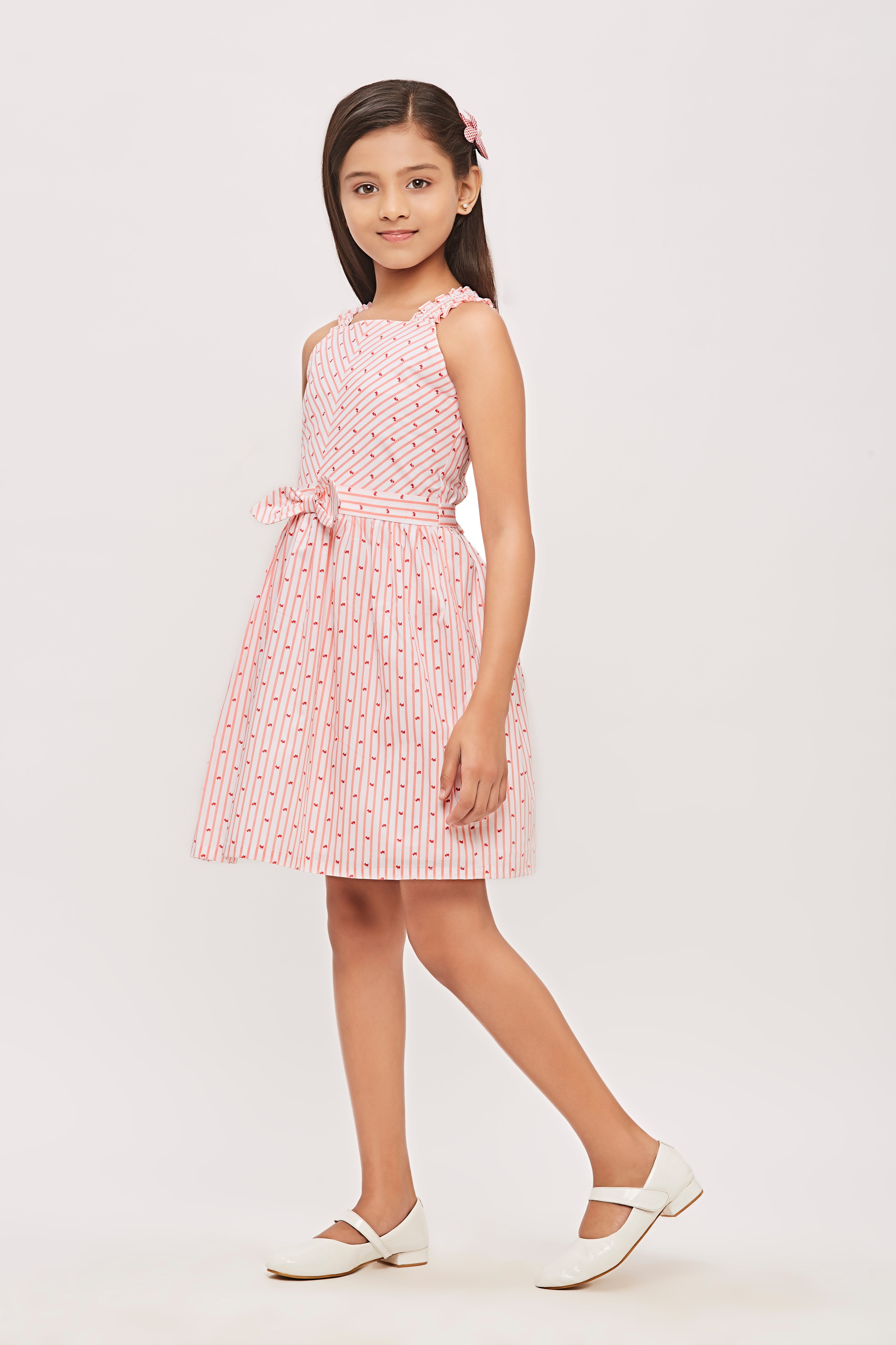 Peach Floral Fit & Flare Dress – Elegant Everyday Style