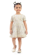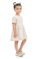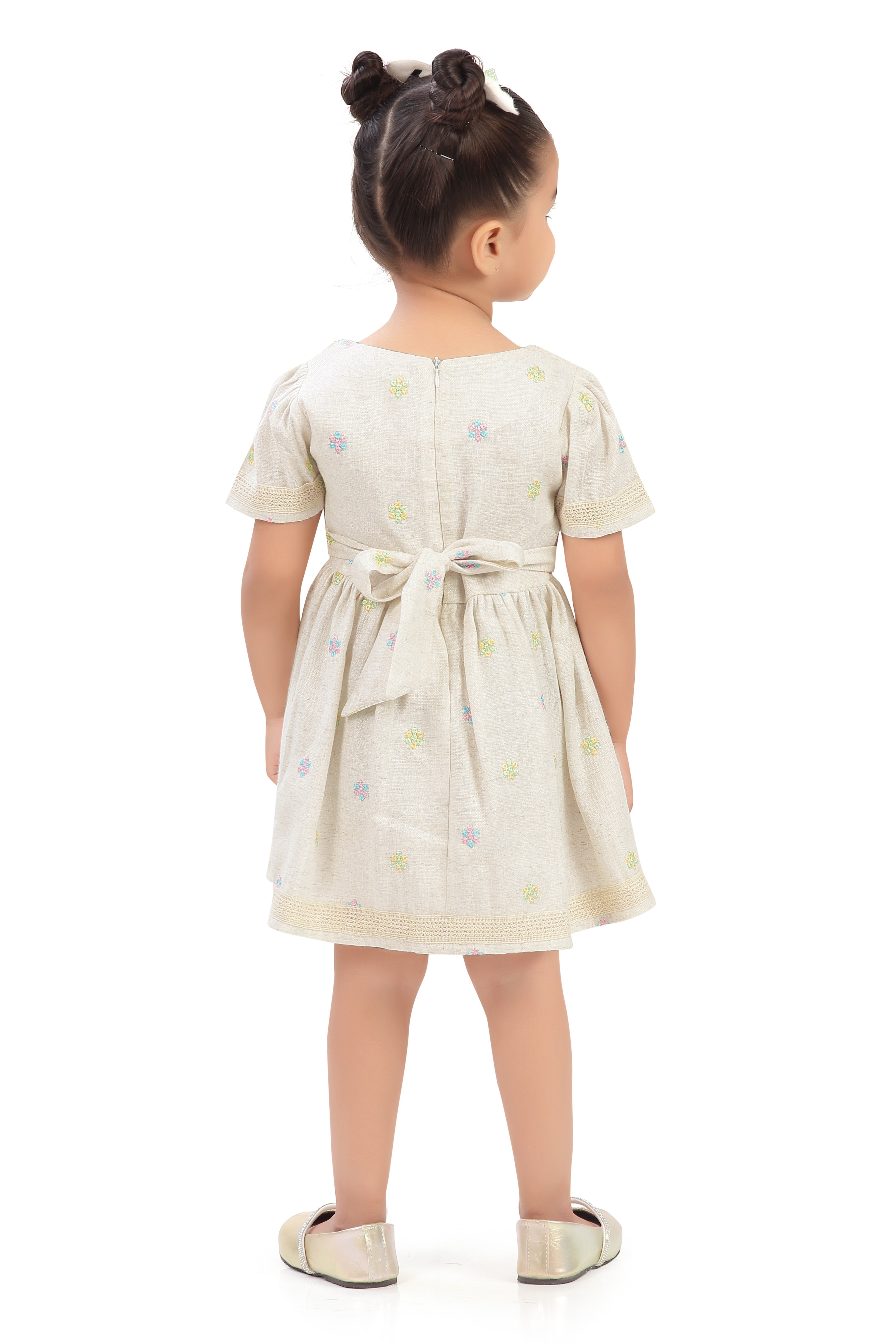 Tressel Off White Half Sleeves Floral Embroidered Cotton Flared Middi Dress